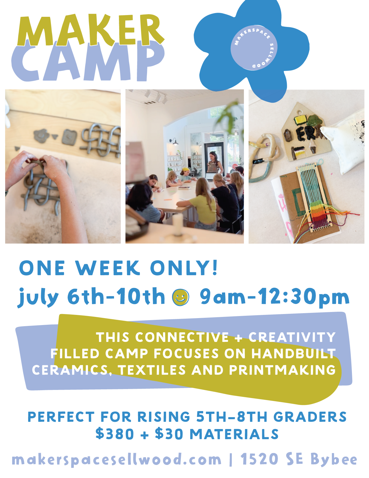 Kids will explore their creativity by diving into clay projects, printmaking, weaving and more. Plus, they’ll be MAKING new friends too!